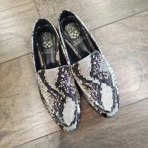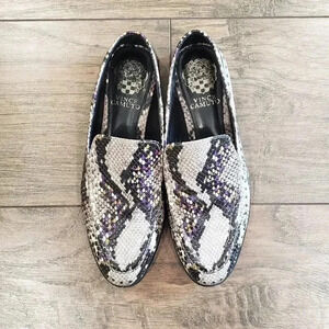 Vince Camuto Jendeya Seashell Leather Multicolor Snake Print Loafers Size 6