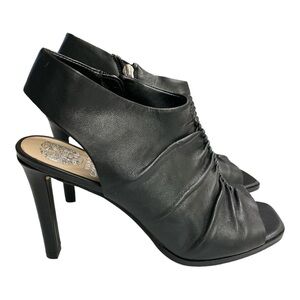 Vince Camuto Jenett Leather Rouched Front Slingback Heeled Booties Black 9 1/2M