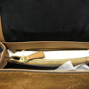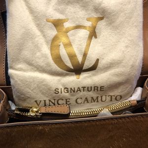 Vince Camuto Jenna Cowhide/Snakeskin Embossed Camel Color Handbag