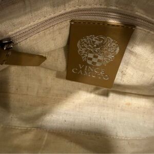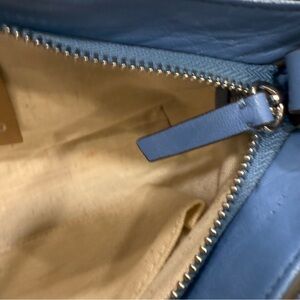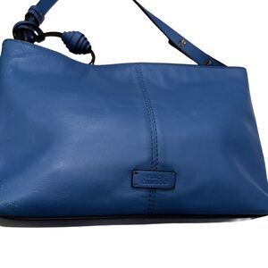 Very good condition. Women’s Vince Camuto crossbody weaved leather bag. Cornflower blue, detachable crossbody strap, top zip close, logo. Large tassel. CALL- OUT small scratch on the bottom of the bag. See last photo. MSRP $158