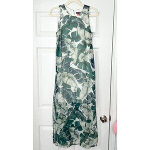Embrace tropical vibes with the Vince Camuto Jungle Palm Overlay Maxi Dress, a stunning piece that brings the beauty of the jungle to your wardrobe. This maxi dress features a lush palm leaf print in shades of green and white, creating an eye-catching pattern that's perfect for any summer occasion.