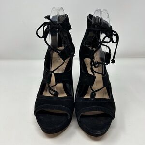 Vince Camuto Kamaye Black Suede Lace Up Platform Heeled Sandals Size 7