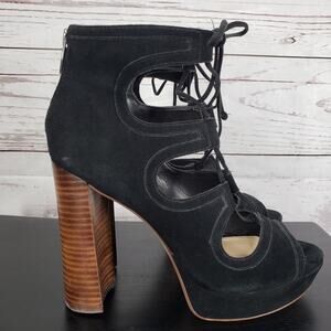 Vince Camuto Kamaye Women's Black Suede Lace Up Block Heel Size 7.5 M
