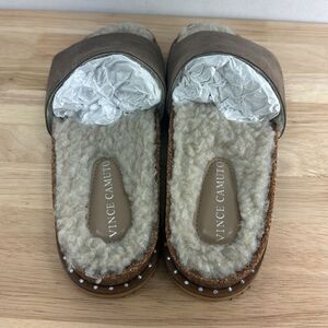 Add practical warmth to your winter ensemble with the Kanadial slide sandal from Vince Camuto. This slip-on is a must-have for this season, designed using a single-banded leather upper and cozy fabric lining.