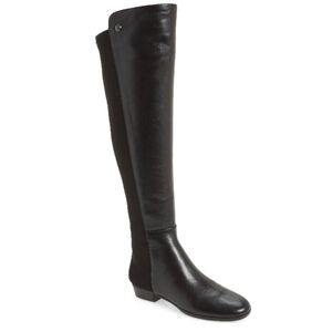 The Karita riding boot is a sure win to wear with its leather/synthetic upper and pull-on construction. These boots go over the knee and have an almond toe. Leather and textile lining. Textile insole.
