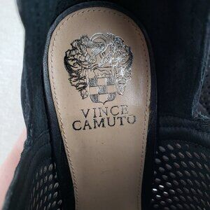 Vince Camuto Kensa Peep Toe Heeled Booties Black Perforated Low Side Size 11