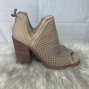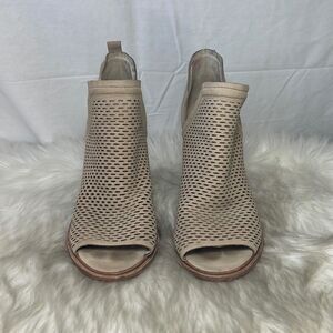 Vince Camuto Kensa Taupe Leather Laser Cut Peep Toe Booties Sz 8