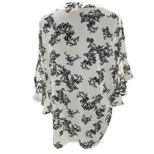 Vince Camuto Kimono Sleeves Blouse Size M Black And White Button Sheer Tunic Top