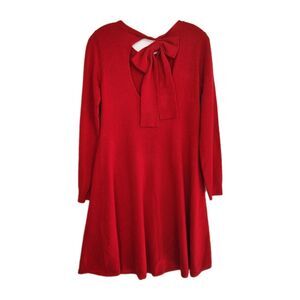 Vince Camuto Knit Dress Women's M Red Knee Length Back Bow Detail Long Sleeves