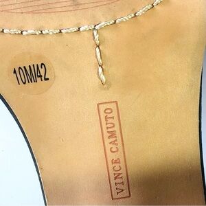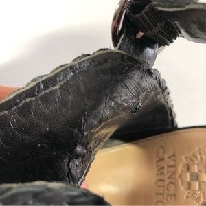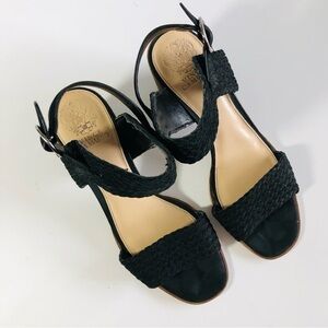 Vince Camuto Kolema block heel sandals in very good condition with peeling lining, see last pictures. Woven straps, adjustable ankle straps, stacked block heel. See pictures for heel height.
