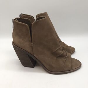 Vince Camuto Kreesi Open Toe Ankle Bootie Womens 9M Brown Suede Back Zip Boots