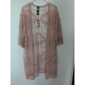 Vince Camuto Lace Embroidered Womens Open Front Kimono Coverup Cameo Rose New