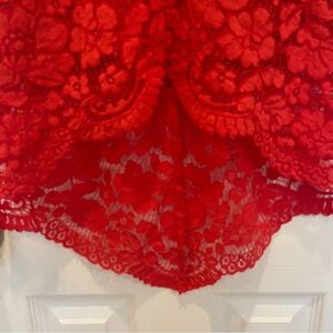 Vince Camuto Lace Midi Dress Women’s Size 6 Coral High Low Short Sleeve Cocktail