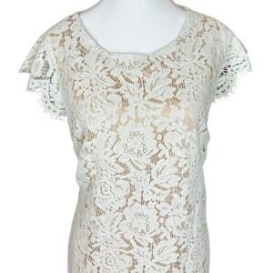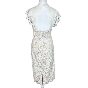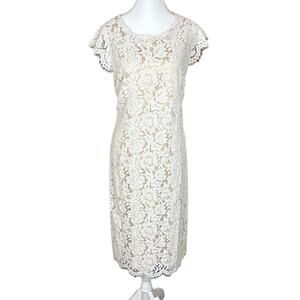 Vince Camuto Lace Open Back Sheath Dress Scalloped Sleeves White Size 16