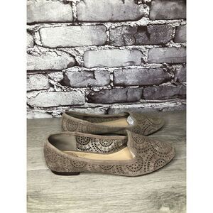 Vince Camuto Lancaster Taupe Suede Perforated Flats Women’s Sz 6.5M US/36.5EU