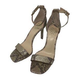 Vince Camuto Lauralie Ankle Strap Sandal Heels 6 Snakeskin Leather Open Toe NWOT