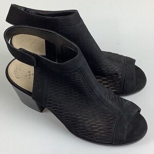 Vince Camuto Lavette Peep Toe 3” Chunky Heel / Sandle, Women’s Size 10 M. Black, Perforated. Very good pre-owned condition, does have some light wear as shown in picture. Strap is a Velcro closure