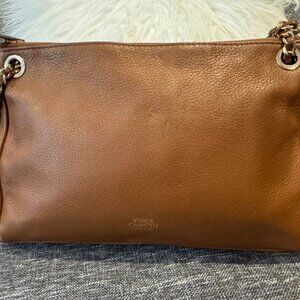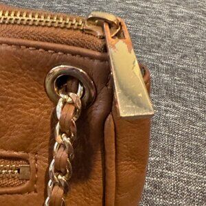 Vince Camuto Leather Brown Crossbody Bag with Chain Strap Tan Clutch