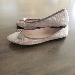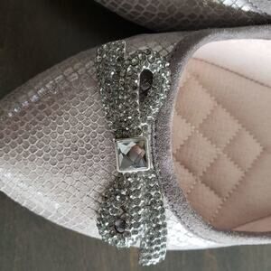 Vince Camuto Leather Flats Size 8 Silver Snakeskin Rhinestone Bow Shiny
