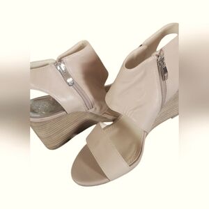 Vince Camuto Leather Lyssia Wedge Side Zip Side Buckles Fastening Nude Sandals