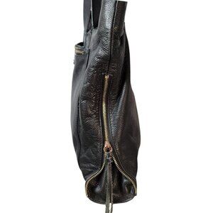 Vince Camuto Leather Shoulder Bag – Pebbled Black with Zip Accents