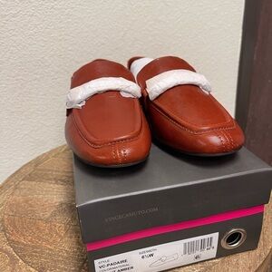 Vince Camuto Leather Slip-On Loafers - Padaire in Burnt Amber. NIB. Size 6.5 Wide. No rips/stains/scuffs or tears. NIB/Original box/packaging. Smoke free home. No odors. All offers are welcome. Thank you!