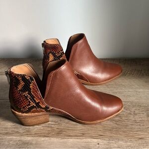Vince Camuto Leather Snake Skin Brown Ankle Boots Size 7W Women