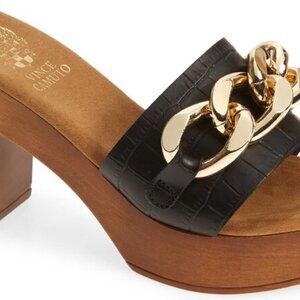 Vince Camuto Leeta Platform Sandal croc black and gold chain size 9
