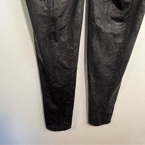 Great condition, minor wear. Vince Camuto. Leggings. Pull on, elastic waist. Black with crinkled pattern/ look to hem, almost a faux leather material in those parts. Style 915136. Size Medium. Stretch 88% nylon, 12% spandex. Waist 15.5” Inseam 27” Front Rise 11”. All measurements are approximate and taken lying flat. Smoke free home. No trades, offers welcome.