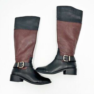 Vince Camuto Leisha Brown Black Leather 6.5 M 36.5 Knee High Riding Boots.