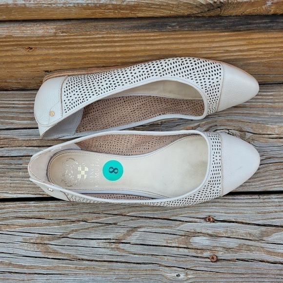 Vince Camuto Lemel Ballet Flat. Women's size 8. Preowned in good condition. The Lemel ballet flat from Vince Camuto is poised and perfect for adding a fashionable twist on your business casual looks. Laser cut leather upper