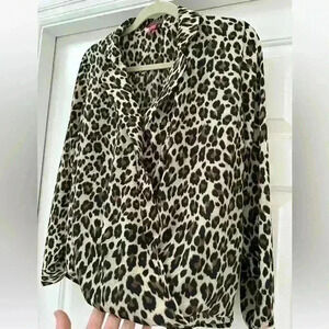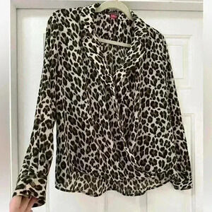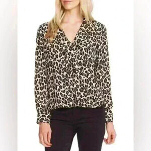 Vince Camuto Leopard Print Wrap Front Style Long Sleeve Blouse Top Size Small