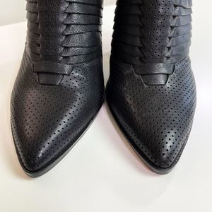 Vince Camuto Levana Heeled Booties Back Zip Perforated Leather Black 9 NWOT