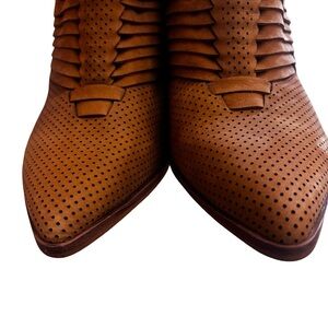 Vince Camuto Saddle 03 Levana Western Shooties with Pointed Toe, Woven & Perforated Suede Leather. 3.75” Heel.