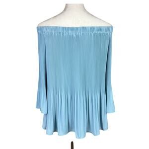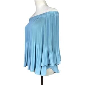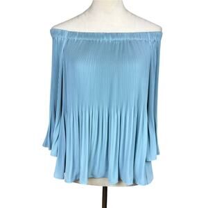 Vince Camuto Light Blue Accordion Pleated Off the Shoulder Bell Sleeve Blouse