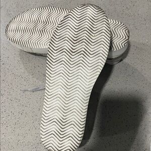 Elegant Vince Camuto loafers. Soft suede texture. Lace-up style for comfort. 1 1/4 platform. Removable insoles. A few scuffs on white but I think can be easily Mr. Clean sponged off.