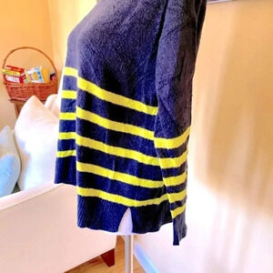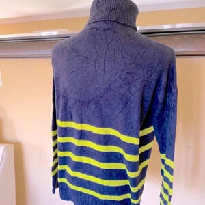 -Navy Blue Turtleneck with neon yellow stripes