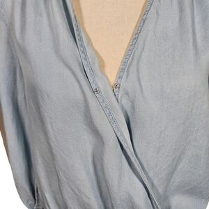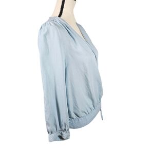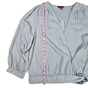 Vince Camuto Lighweight Denim, Wrap Front Blouse, Light Blue, Size Small