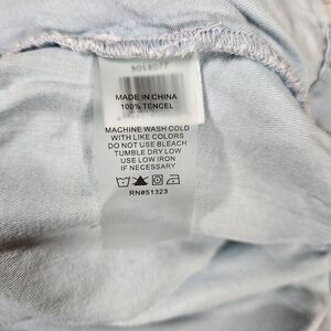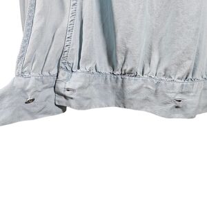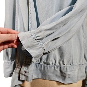 Very Lightwash Denim Made From Tencel, V-Neck With Snap Closure, Button Closure On Bottem With Tie, Pleated Shoulder Accent, Very Lightweight And Breathable