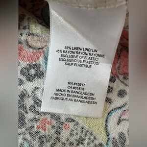 Lightly worn. Bold colorful print. Linen blend. Size 6