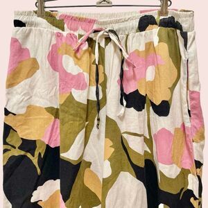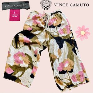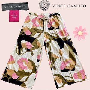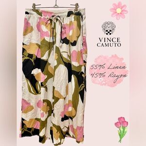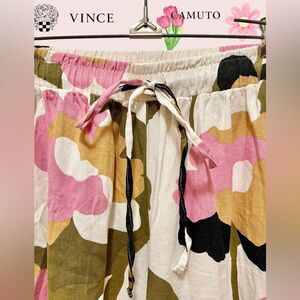 Vince Camuto Linen Blend Floral Print Wide Leg Drawstring Pants Blush Camo L