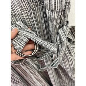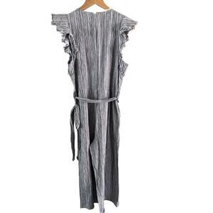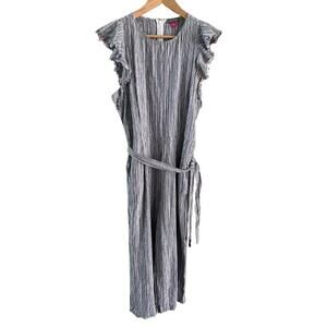Vince Camuto Linen Blend Raw Flutter Sleeve Belted Striped Cropped Jumpsuit Sz S