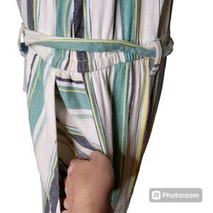 Vince Camuto Linen Blend Striped Daybreak Cropped Jumpsuit Size Large