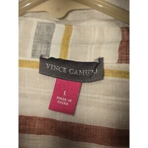 Vince Camuto Linen Shirt ButtonUp White Stripe Short Sleeve Size Large