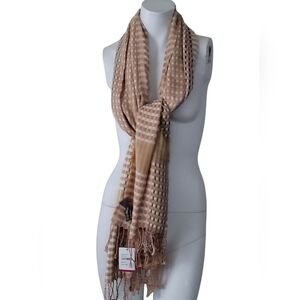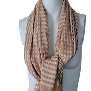 Vince Camuto Long Plaid Neutral Fringe Scarf New