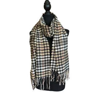 Vince Camuto Long Warm Fringed Houndstooth Scarf, Black, Pink, Beige, EUC