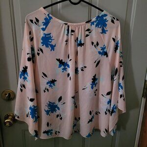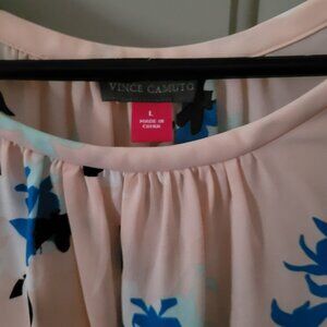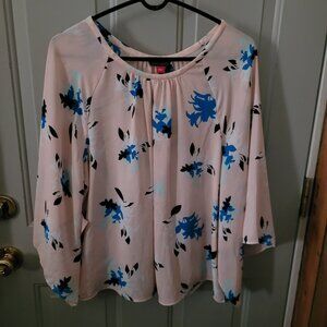 Vince Camuto Lovely Pink Blouse with Blue Floral Design Misses Large