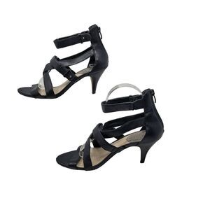 Vince Camuto Macobi Strappy Black Leather Kitten Heels Size 8 Ankle Strap Baddie