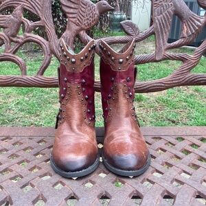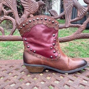Vince Camuto Madalissa Leather Distressed Studded Almond Toe Ankle Booties