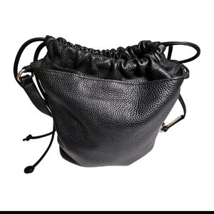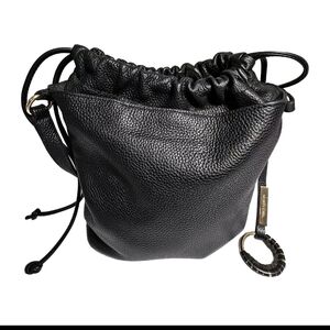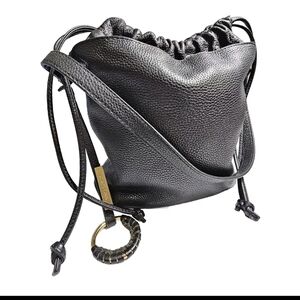 Vince Camuto Mandi-Bu Black Pebbled Leather Bucket Hobo Shoulder Bucket Bag